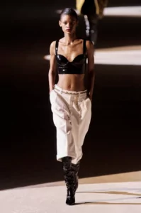 Façon swimwear ou lingerie, les dessous ont conquis les podiums notamment chez Miu Miu, Bottega Veneta et Dolce & Gabbana. Seule règle de cette tendance mode : les associer aux basiques essentiels du quotidien tels que le t-shirt blanc ou le trench pour des looks sophistiqués mais qu’on peut facilement se procurer.