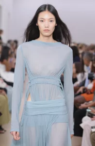 Le vêtement de tulle, d’organza ou de mousseline laissant voir la peau avait commencé à devenir tendance en 2023. En 2024, il déferle, y compris dans les maisons les plus classiques, les défilés. C’est devenu la touche sexy tout en restant chic pour ne pas entrer dans le vulgaire. Le site spécialiste de la mode TagWalk indique que la part de looks transparents a augmenté de 40% dans le top 20 des marques les plus influentes entre 2023 et 2024. En blanc ou en noir, couleur la transparence devient romantique et poétique